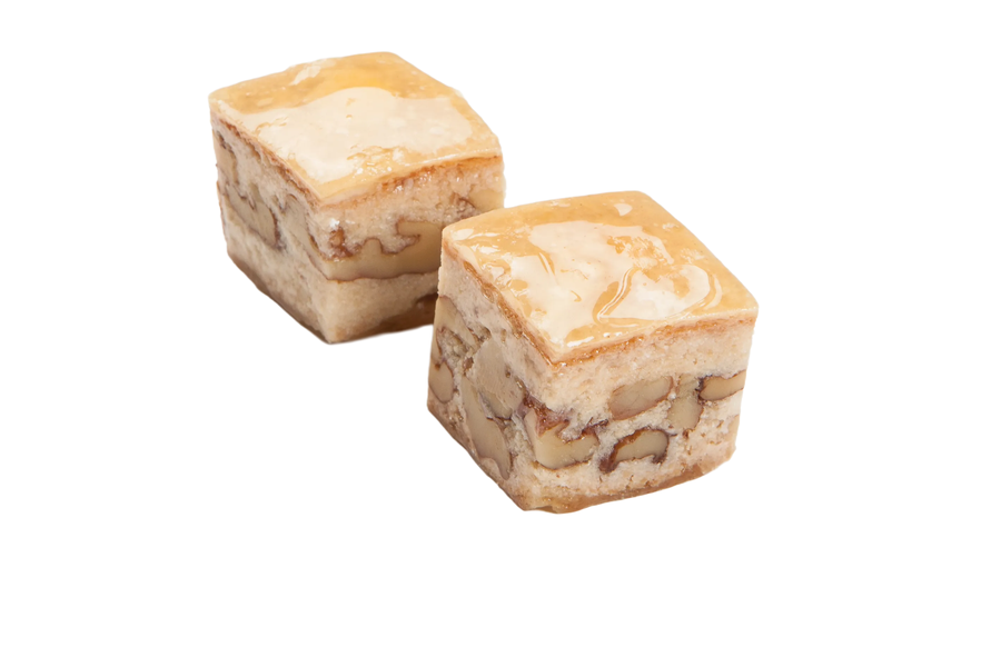 Plongez dans l’univers de la gourmandise avec notre Baklewa Noix, une pâtisserie tunisienne raffinée qui marie harmonieusement la douceur des amandes et le croquant des noix.