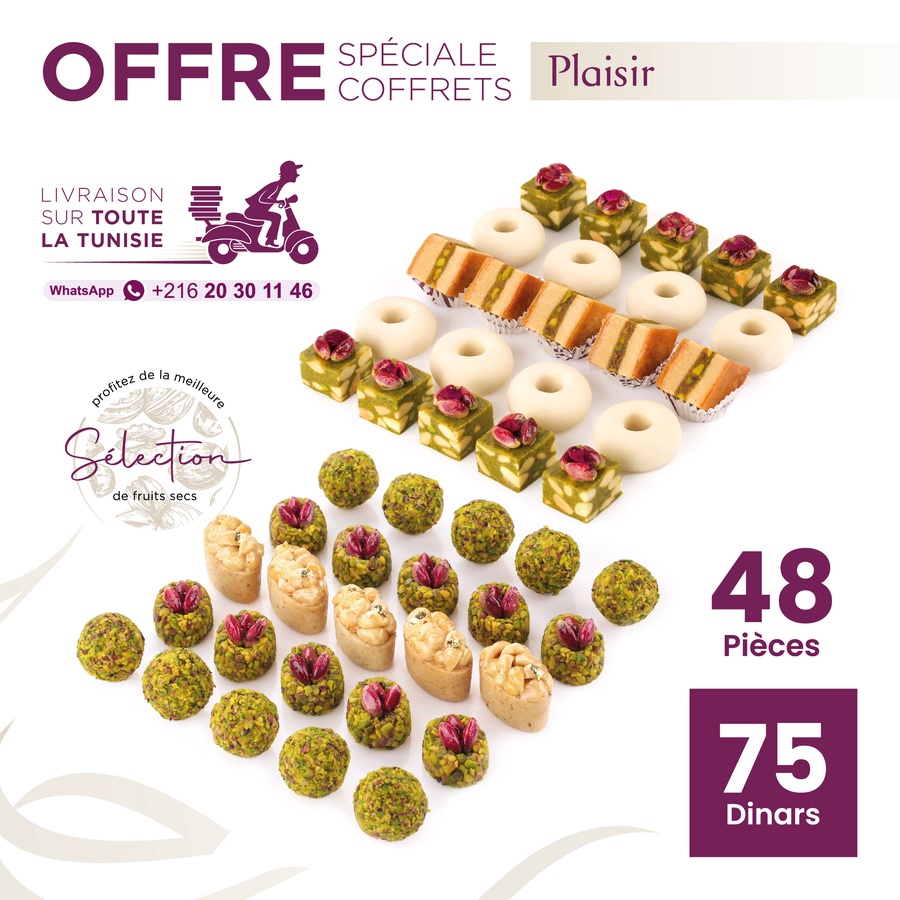 Découvrez l’Offre Plaisir, un coffret raffiné de pâtisseries fines. Présentation élégante, goût authentique et fraîcheur garantie par Pâtisserie Madame Sakka